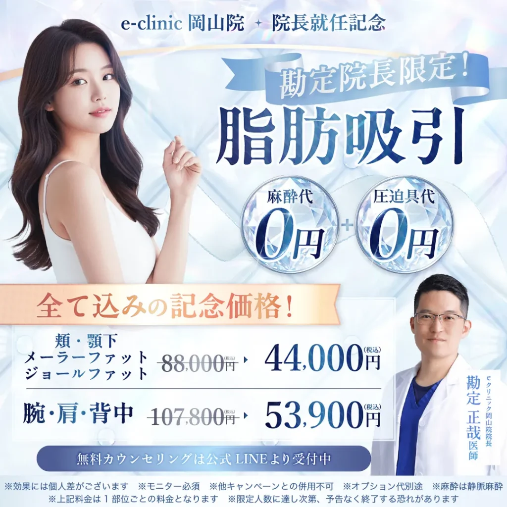 eクリニック岡山院は、医療の原点である「信頼と安心」を大切にし、一人ひとりの理想に真摯に向き合う美容外科です。